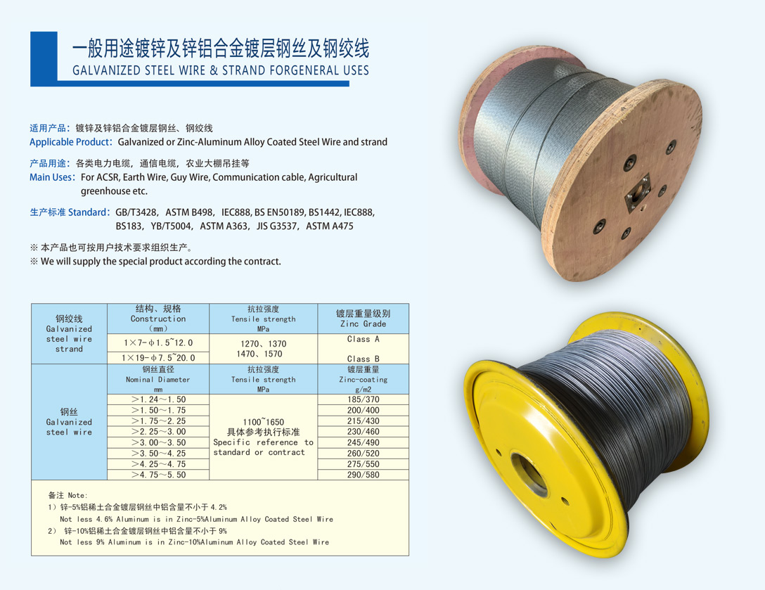 通信光電纜用鍍鋅鋼絲通信光電纜用鍍鋅鋼絞線機(jī)編鋼絲網(wǎng)用鍍層鋼絲防振錘用鋼絞線一般用途鍍鋅及鍍鋅鋁合金鍍層鋼絲及鋼絞線預(yù)絞式金具用鍍層鋼絲制釘用鍍層鋼絲